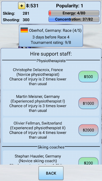 - กิจกรรมมากมาย (เช่นส่ง biathlete ของคุณเพื่อขายเบียร์ในผับเพื่อรับเงินสดพิเศษหรือไปที่สกีรีสอร์ทในภูเขาเพื่อพักผ่อนก่อนการแข่งขัน Biathlon) อีกมากมายที่คุณสามารถปลดล็อกได้ในขณะที่เล่น Biathlon Manager 2018