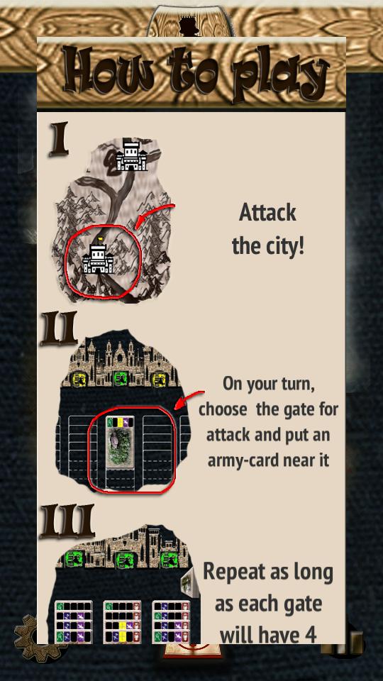 โจมตีเมืองในห้าพื้นที่ รวบรวมกองทัพที่ทรงพลังด้วยการ์ดของหน่วยในแต่ละการ์ดและจับประตูเมือง จับประตูมากกว่าคู่ต่อสู้ของคุณและเมืองจะถูกยึดครอง!