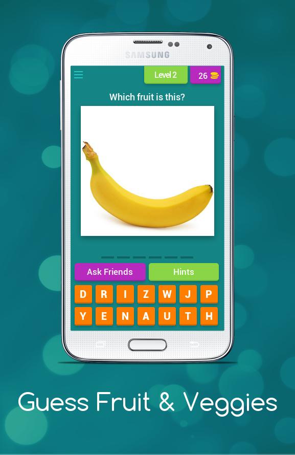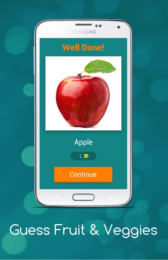 ด้วยความช่วยเหลือของแอพผลไม้และผักที่เด็ก ๆ จะได้เรียนรู้ชื่อของผักและผลไม้ในระดับเริ่มต้นภาพทั่วไปของผลไม้จะปรากฏขึ้นและคุณต้องเดาชื่อของภาพนั้นทุกระดับจะมีภาพผลไม้และผักพร้อมกับภาพบางคำ