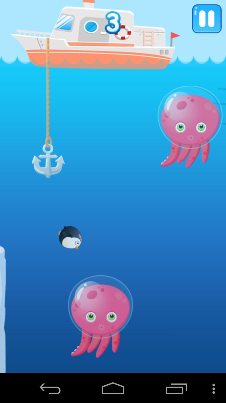 นกเพนกวินตัวน้อยชอบดำน้ำในทะเลขั้วโลก อย่างไรก็ตามมันเป็นการผจญภัยที่อันตรายในทะเลลึก มีกับดักร้ายแรงทุกที่ ศัตรูที่เป็นอันตรายปรากฏขึ้นบ่อยครั้งตลอดทาง โปรดช่วยนกเพนกวินตัวเล็ก ๆ นี้ให้ดำน้ำอย่างปลอดภัย เกมนี้เป็นเกมที่เสพติดมากและคุณสามารถหาความสนุกได้มากมาย มันเป็นเกมที่ดีที่สุดที่จะใช้เวลาในการขนส่งมวลชนและรถบัสสาธารณะเนื่องจากเกมนี้ต้องการการควบคุมแบบสัมผัสเดียวเท่านั้น