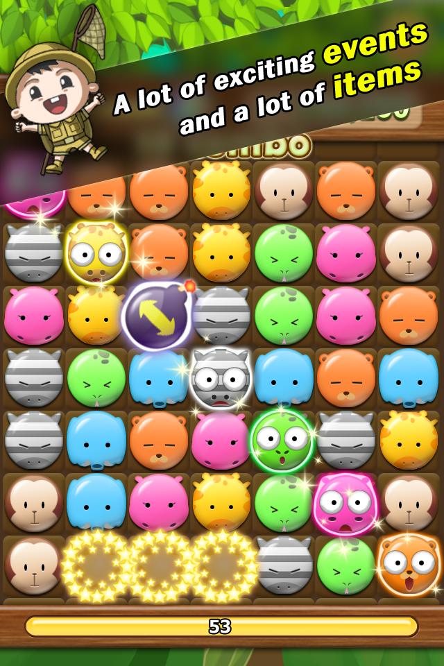 เมื่อมาถึง Jungle Pang ผู้เล่นจะหลงทางในป่าที่มีสัตว์และผู้เล่นจำนวนมากต้องหาสัตว์เดียวกันอย่างรวดเร็วและจัดเรียงแถวแนวดิ่งหรือแนวนอนเดียวกันตามหลักการที่มีสัตว์อย่างน้อย 3 ตัวที่คล้ายกันเพื่อให้พวกมันหายไป