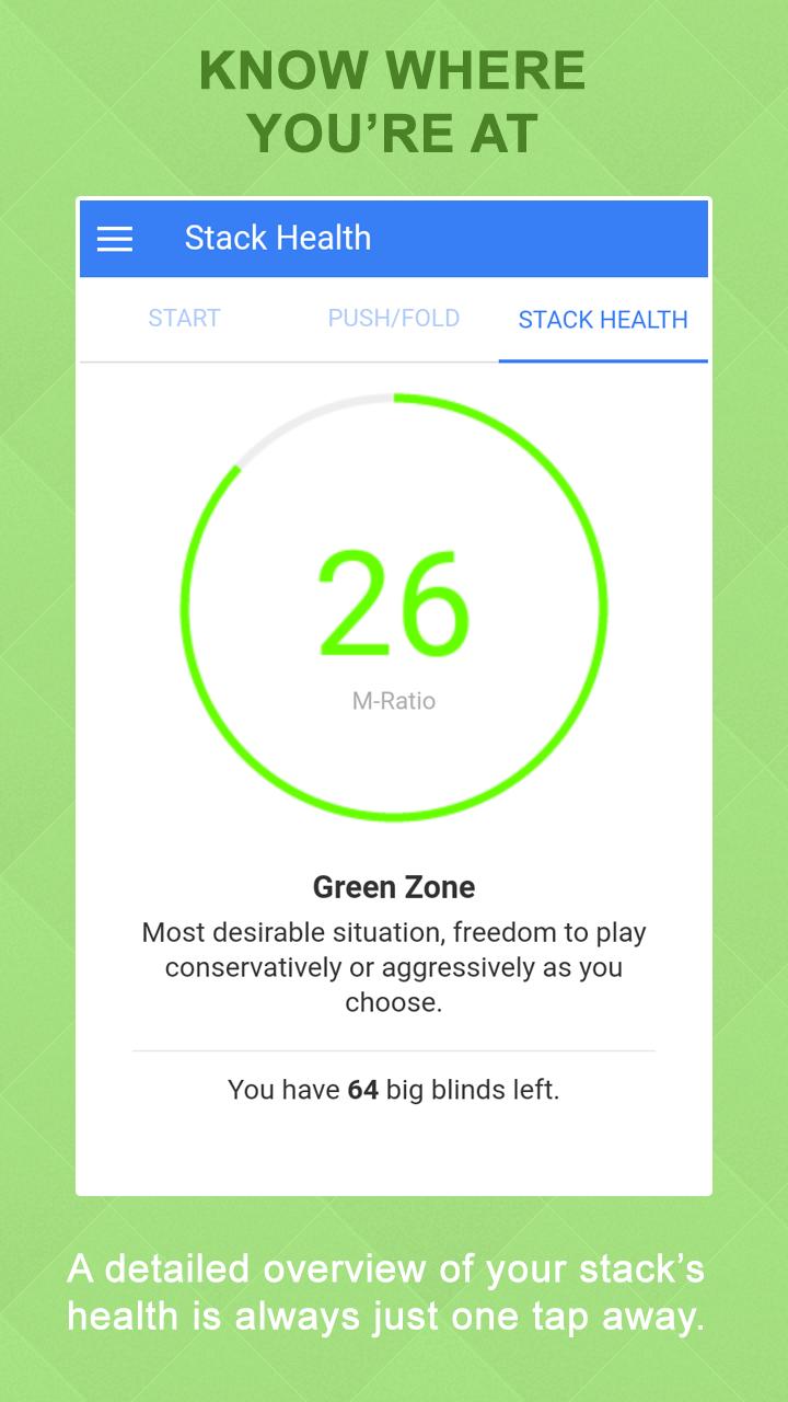 มันแสดงให้คุณเห็นว่ามือใดที่จะไปทั้งหมดและมือที่จะพับขึ้นอยู่กับขนาดสแต็กมู่ลม่าน ante และจำนวนผู้เล่นในการแข่งขันโป๊กเกอร์โฮลเด็มไม่ จำกัด ด้วยการใช้สูตรที่ซับซ้อนของสูตร Poker Hacker คำนวณกลยุทธ์การผลักดันที่ดีที่สุดตามสถานการณ์ปัจจุบันของคุณและอัตราส่วน M ของคุณ