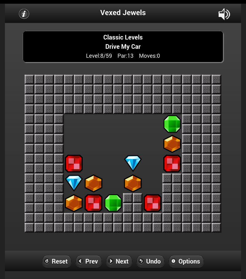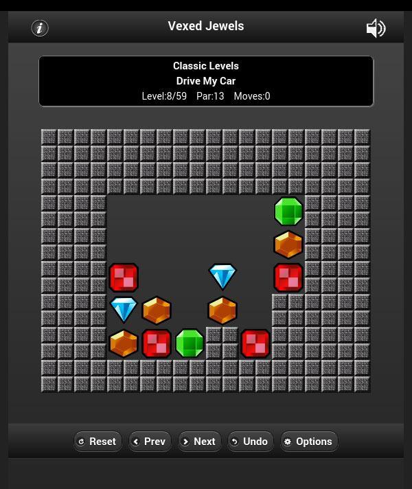 Vexed Jewels เป็นเกมปริศนาที่รู้จักกันดีซึ่งเป้าหมายของคุณคือการย้ายอัญมณีที่คล้ายกันเคียงข้างกันเพื่อให้พวกเขาหายไป เมื่ออัญมณีทั้งหมดหมดไปแล้วคุณจะแก้ไขระดับและก้าวไปสู่ระดับใหม่ ย้ายอัญมณีโดยวางนิ้วบนพวกเขาและเปลี่ยนไปทางขวาหรือซ้าย หากพบพื้นที่ว่างเปล่า "แรงโน้มถ่วง" จะเข้ายึดครองและอัญมณีก็ตกลงไปด้านล่าง