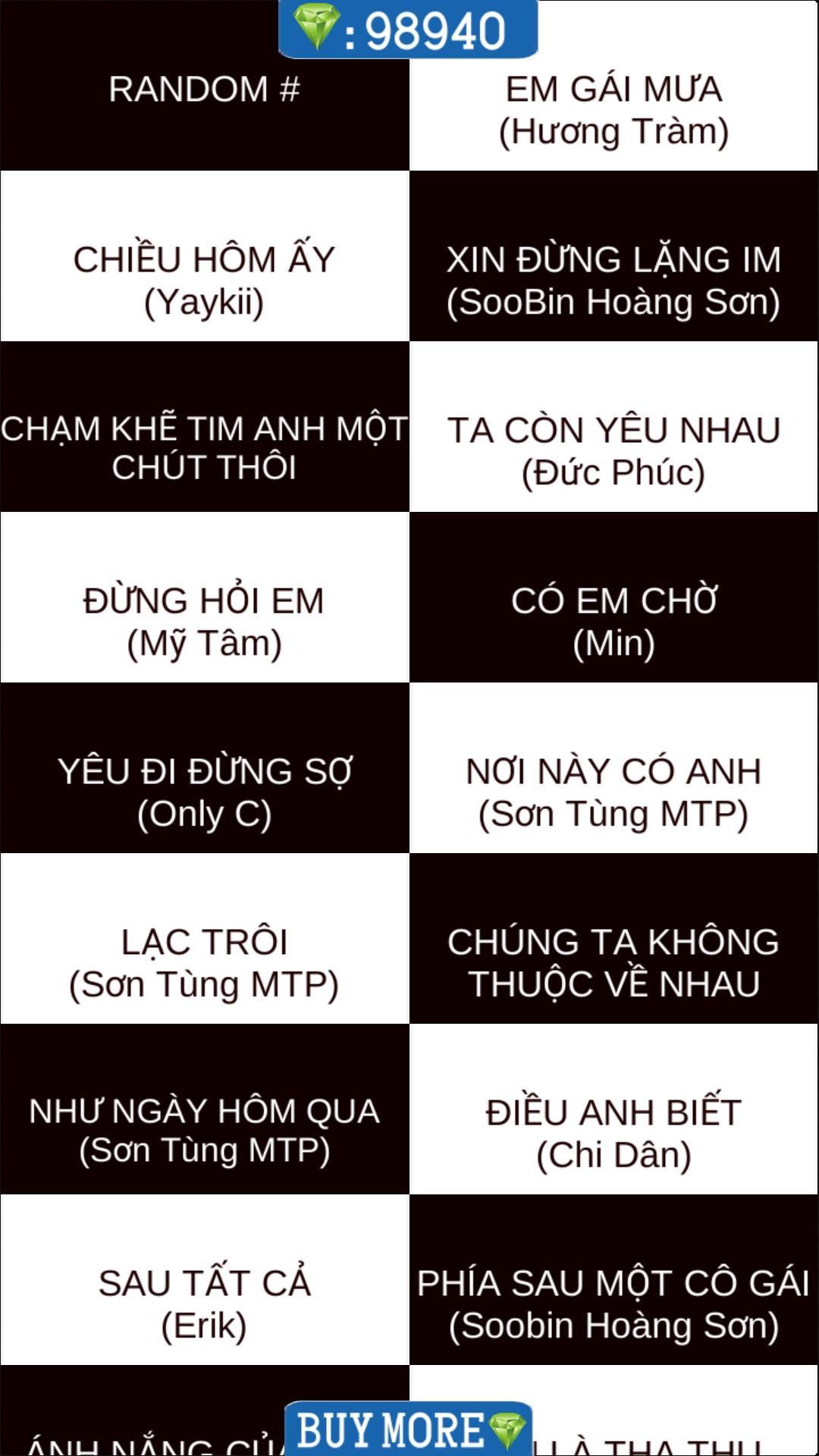 เกมเปียโนเสพติดที่มีเพลงเสพติดโดยศิลปิน V-pop