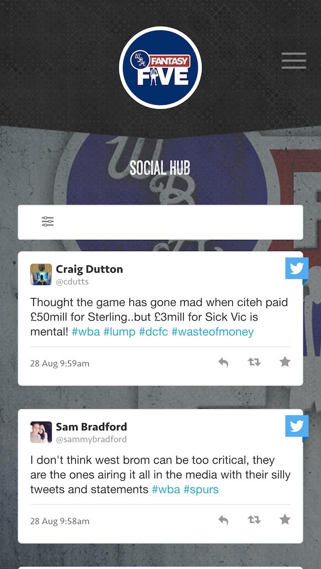 WBA Fantasy 5 เป็นเกม West Brom อย่างเป็นทางการสำหรับฤดูกาล 2015/2016 แอพ Sports Fantasy Sports 5 ตัวที่มุ่งเน้นไปที่แฟน ๆ WBA และ Fantasy Football Lovers เล่นง่ายเพียงแค่เข้าสู่ระบบเลือกเกมและเลือกผู้เล่นห้าคนที่คุณคิดว่าจะมีผลกระทบมากที่สุดในเกมนั้น WBA Fantasy 5 มันเป็นแนวคิดที่ไม่เหมือนใครในพรีเมียร์ลีก เปิดโอกาสให้ผู้เล่นมีโอกาสเล่นเกมที่น่าตื่นเต้นและมีกลยุทธ์ในสภาพแวดล้อมการแข่งขันที่เต็มไปด้วยความสนุกสนาน