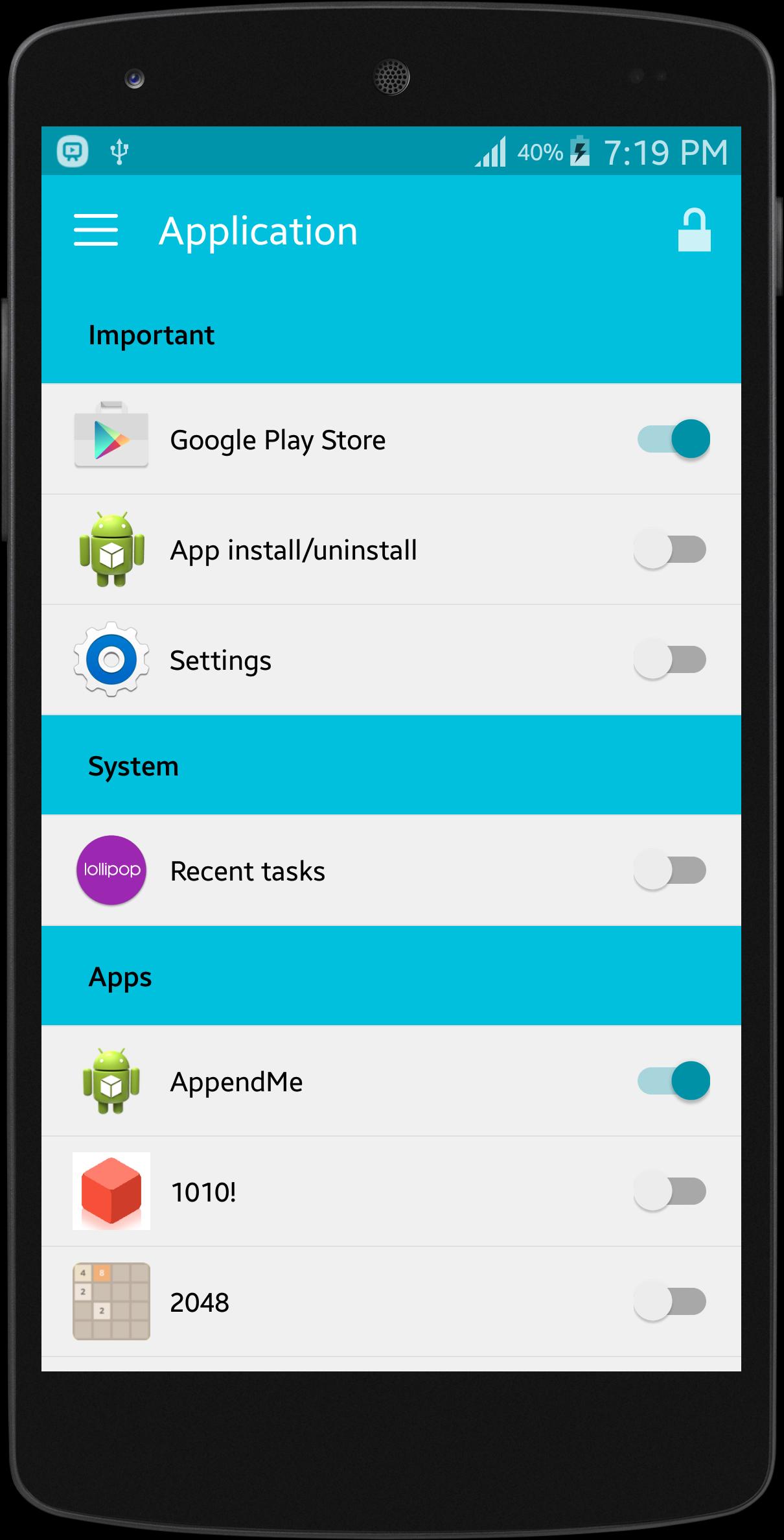 •锁定您的应用程序,例如画廊,联系人,消息,视频,电子邮件等。因此,您可以锁定Android手机上的每个应用程序。