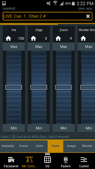 aRFR支持编程和播放所需的大多数功能。它不支持远程修补和系统配置。基于选项卡的系统从完整键盘,移动的灯具控制,直接选择,播放工具和提示列表中更改显示。安全控制阻止未经授权访问照明系统。