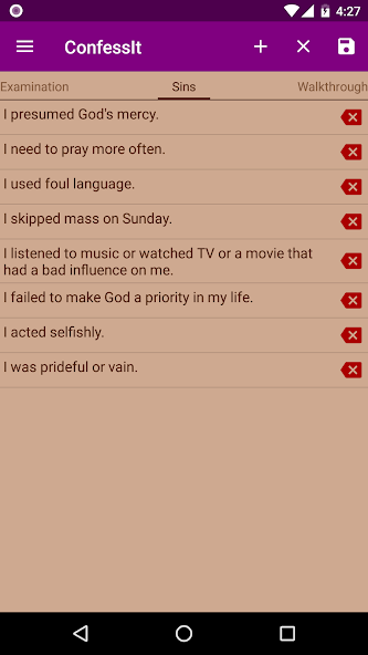 ConfessIt是对您的Android设备的良心应用程序的罗马天主教检查。它旨在简单易用,它将帮助您记住供认的罪过。还有一个坦白的演练,可以告诉您您的悔者会说些什么以及应该如何回应。良心的检查基于天主教会的基本教义,易于理解,并且与现代天主教徒有关。