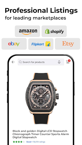 使用一张产品照片,获取绝对免费的产品列表,包括专业的白色背景图像,生活方式图像和SEO优化产品说明,可以在亚马逊,沃尔玛,eBay,Etsy,Etsy,Poshmark等上列出列表