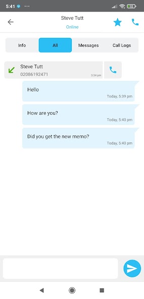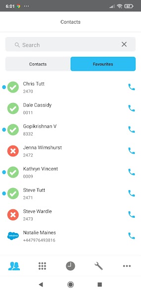 •联系人:查找组/企业和来自Broadworks的个人联系人以及移动设备上存储的联系人。