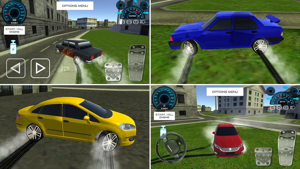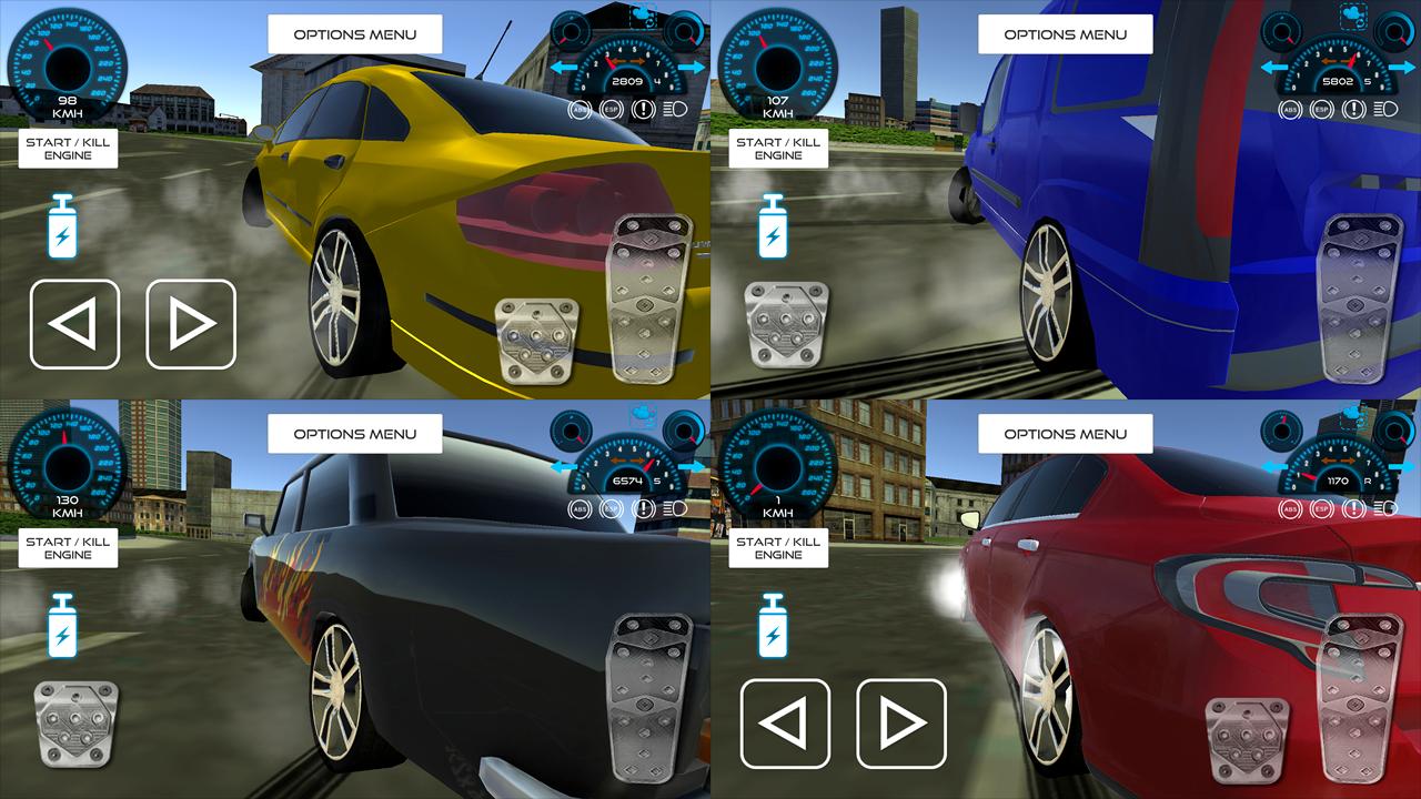 您可以通过3种不同的摄像头模式以不同的角度使用它。您想要大型城市在模型中自由横穿停车场或将其用作模拟器。选择您选择的汽车和启动的汽车。免费的漂移赛车游戏。