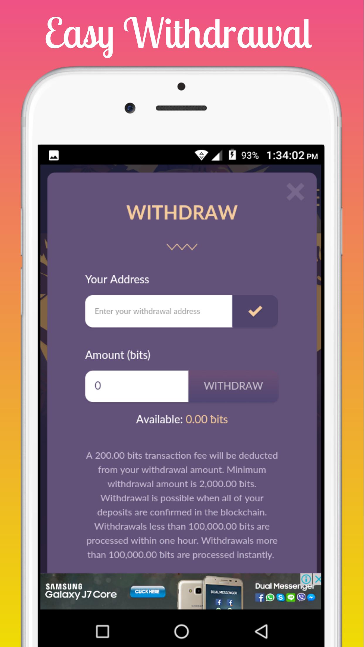 我没有任何存款或撤回资金的问题。他们提到可以手动处理大型撤回,但我撤回了高达0.15 BTC的情况。 (我的赌博胜过我负担得起的更多!)