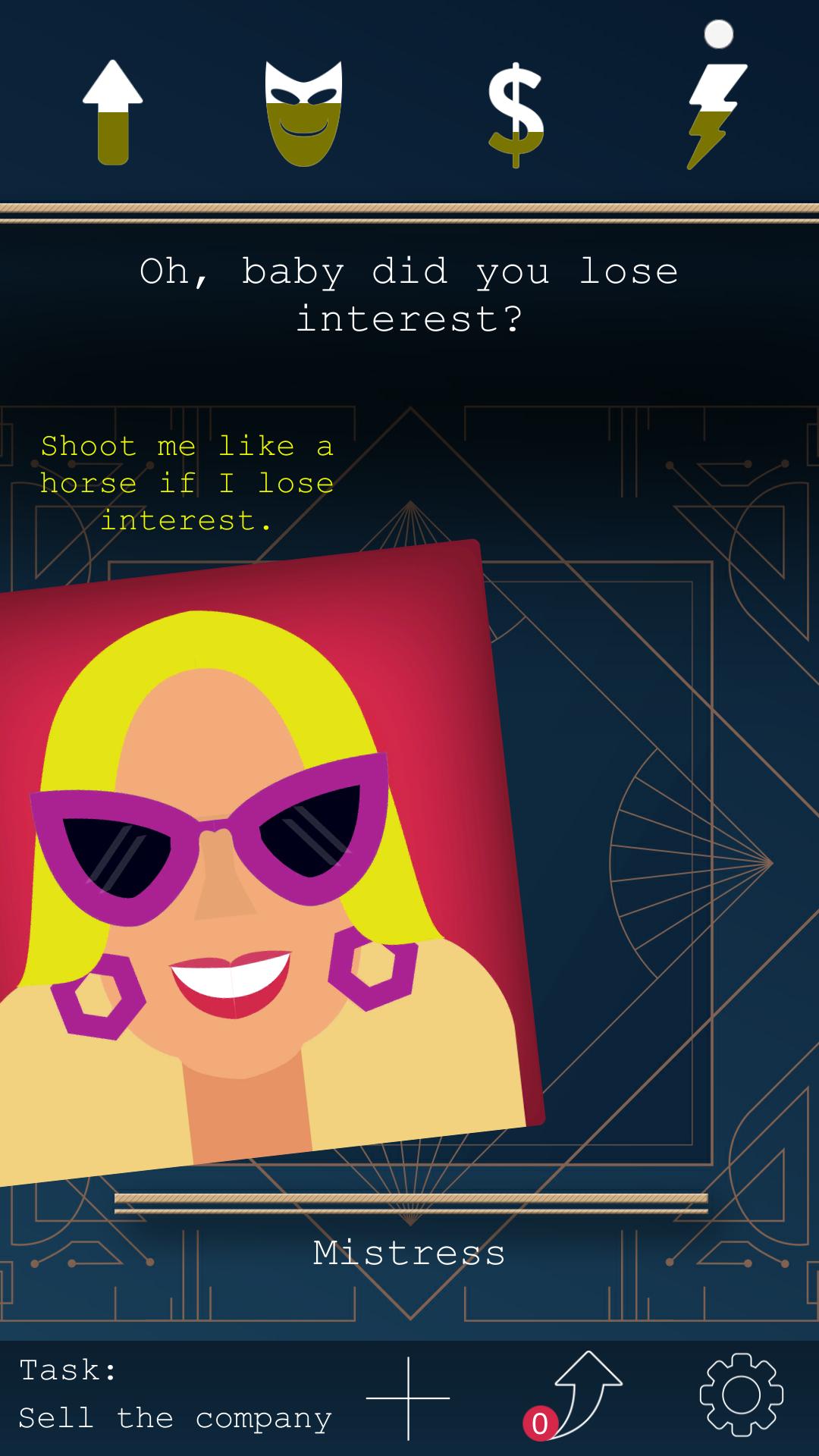 尝试保持平衡您的统计数据:成功,士气,金钱,精力。并上台!