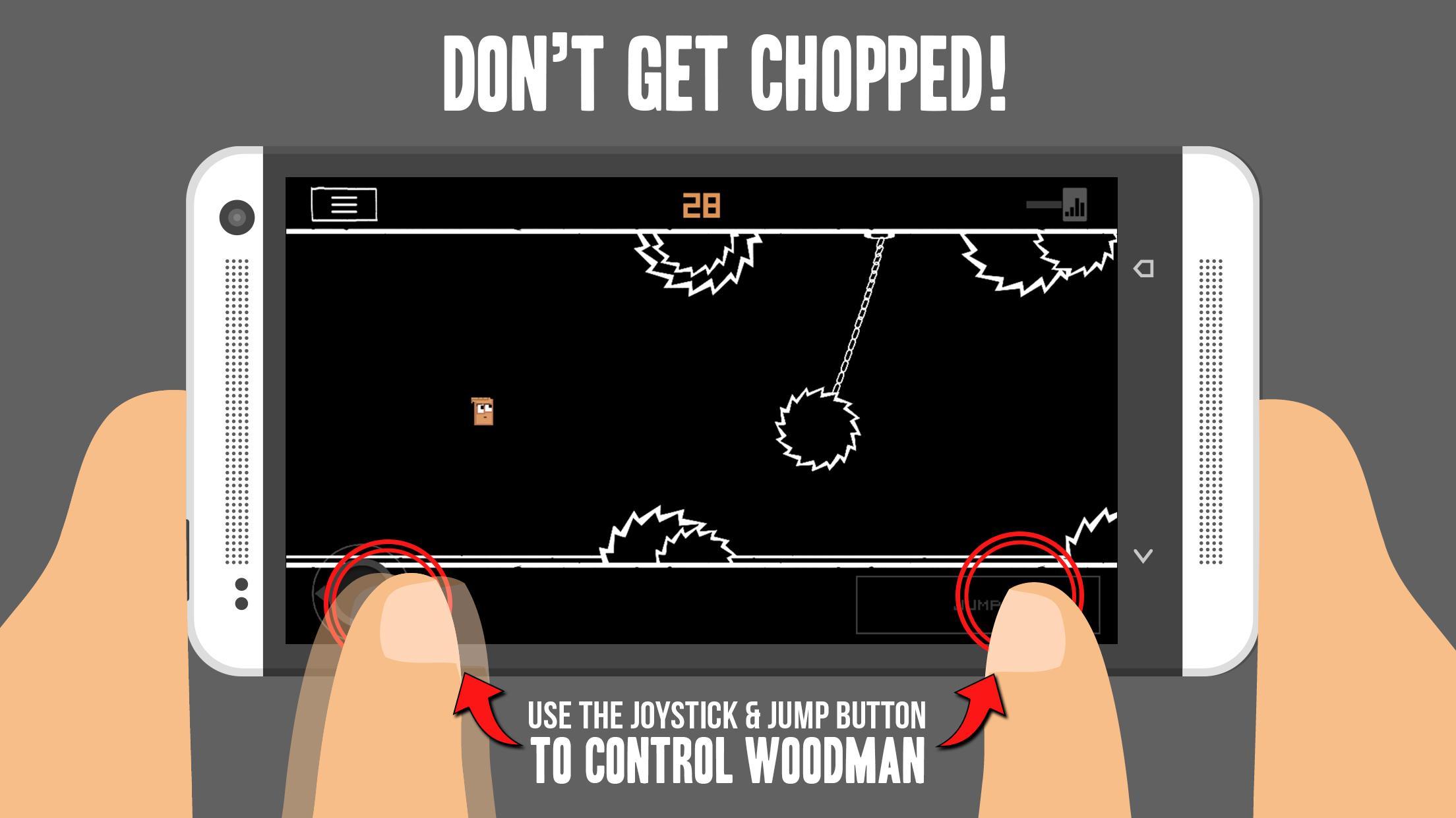 Chop Block是一种激进的平台游戏,致命的锯子追赶Woodman(一小块木材)。跳过锯子或伍德曼将被切成碎片。尽可能长时间保持生命。