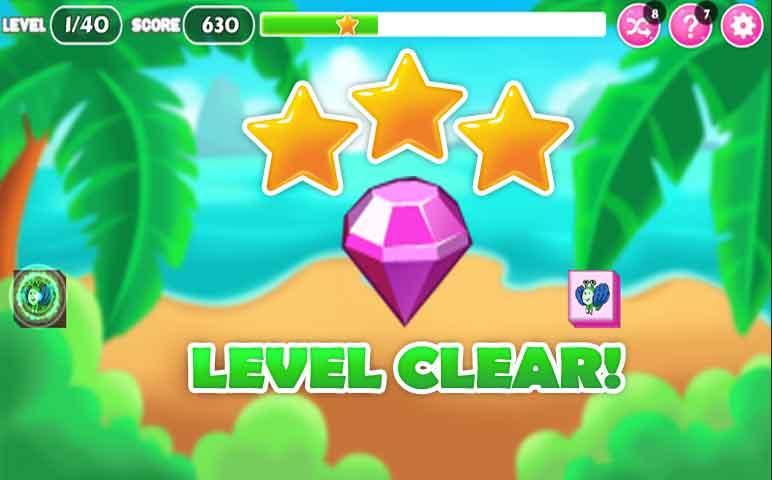 1。删除可以连接3行的相同类型的2个动物或果实图标