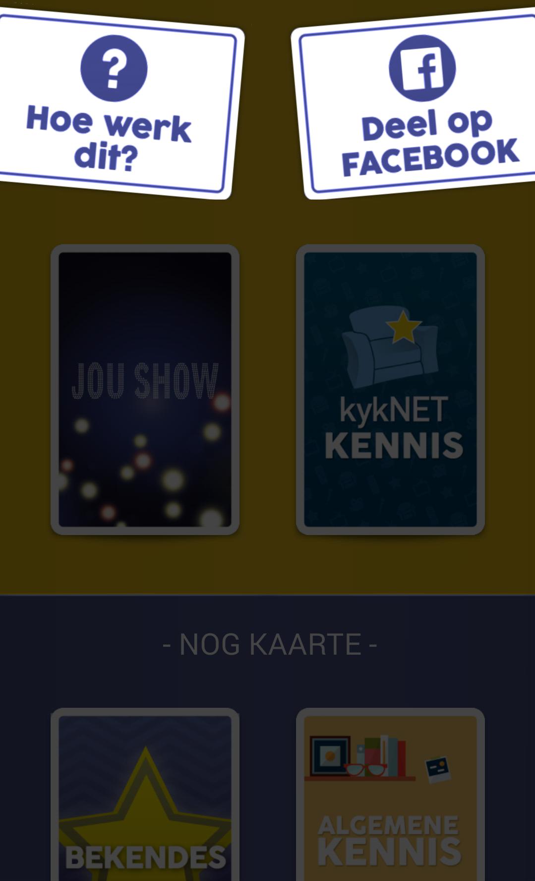 Kophou是Emo Adams和他的客人在Jou Show,受欢迎的Kyknet电视节目中玩的有趣游戏,此应用程序也可以玩!这是很有趣的,他们会在年轻人中娱乐年轻人,因为他们在笑得开心的同时测试自己的常识。它是这样的工作:选择一个主题,点击“开始”,然后将手机放在额头上。卡将一次出现在屏幕上。然后,另一个播放器必须在屏幕上描述或表现出屏幕上的单词,而无需说出实际单词。如果您想通过正确或向后回答,请将手机/平板电脑转发。就像那样简单!在玩手机时,您的手机会录制每个人都表现出线索的视频,并且完成后,您可以将其发布到Facebook或将其保存在手机上。