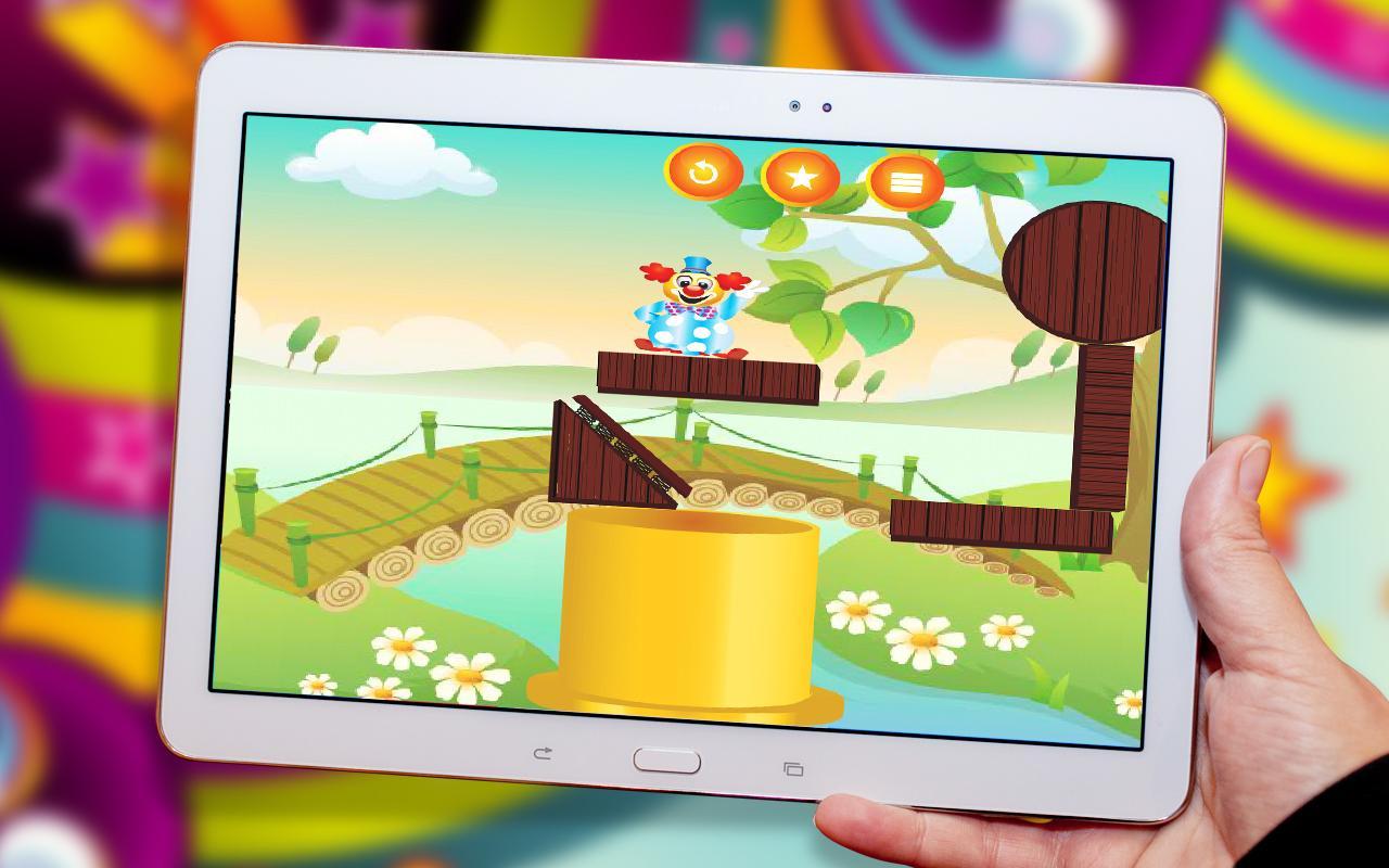 因此,孩子们您会玩这个超级有趣的游戏,在那里您必须打破对象并使小丑以正确的角度落下,才能达到下一个水平的目的地。如果小丑落在地面上,那么您将失败,必须重试。该游戏具有许多令人兴奋的水平,每个级别都面临着一个新的独特挑战。您必须玩这个免费的益智游戏几天才能解决每个阶段。