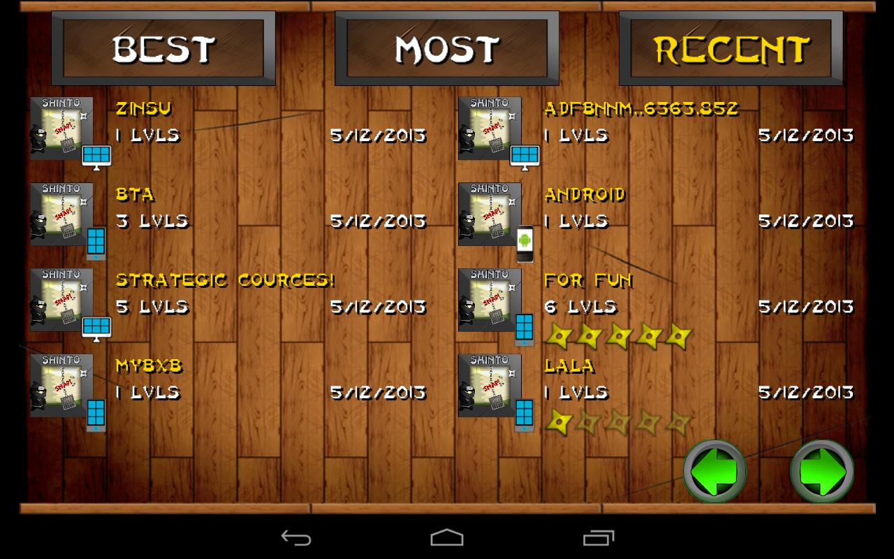 上传时,请使用级别的创建者为自己和他人创建有趣的水平。您可以对受欢迎的用户集进行评分,下载和播放,因此您将始终有新的级别来挑战自己!