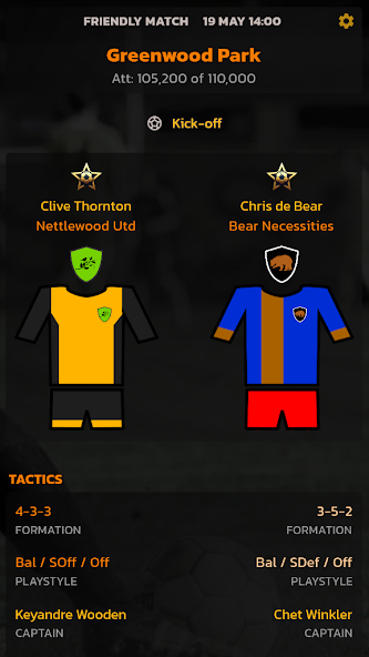 加入游戏的主要聊天室的酒吧社区,您可以在那里与其他经理讨论策略,足球或简单地闲逛。或为您和您的朋友创建自己的聊天空间以制定和社交。