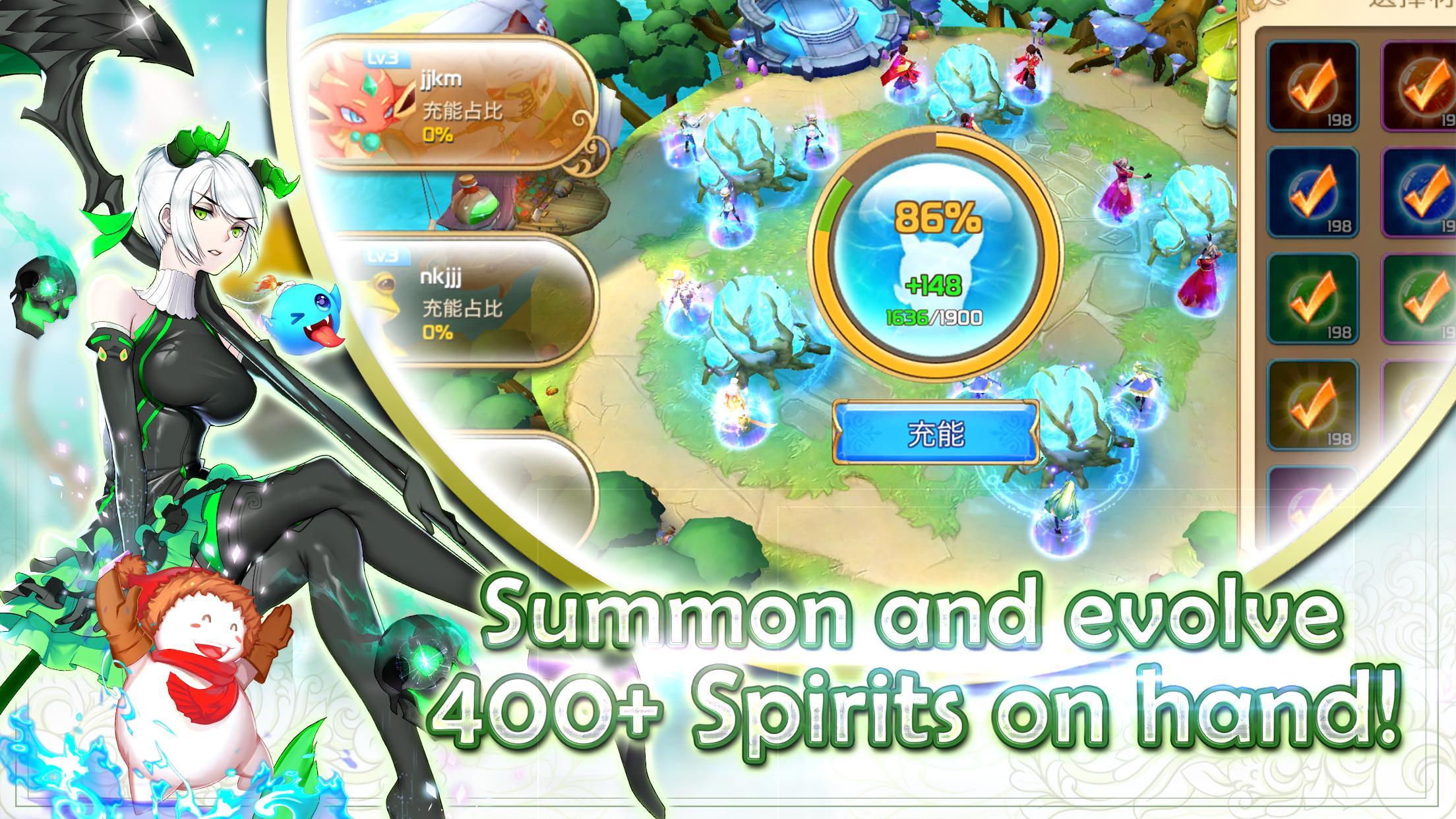 400多个精神将被召唤和收集。训练他们进入强大的小队,以击败对手!