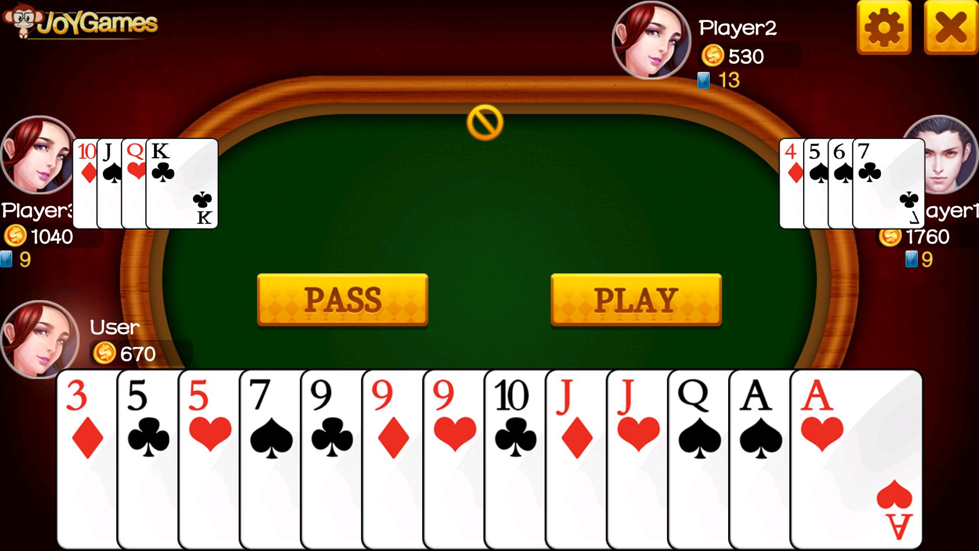 受欢迎的纸牌游戏Tien Len World (“TiếnLên”)是一款适合4个玩家的游戏。