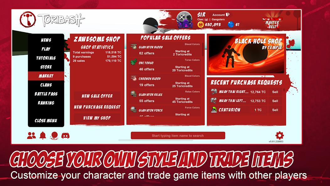 在激烈的在线比赛中证明自己并获得独家奖励。向世界展示您对Toribash的掌握,并成为全球战斗社区的传奇。