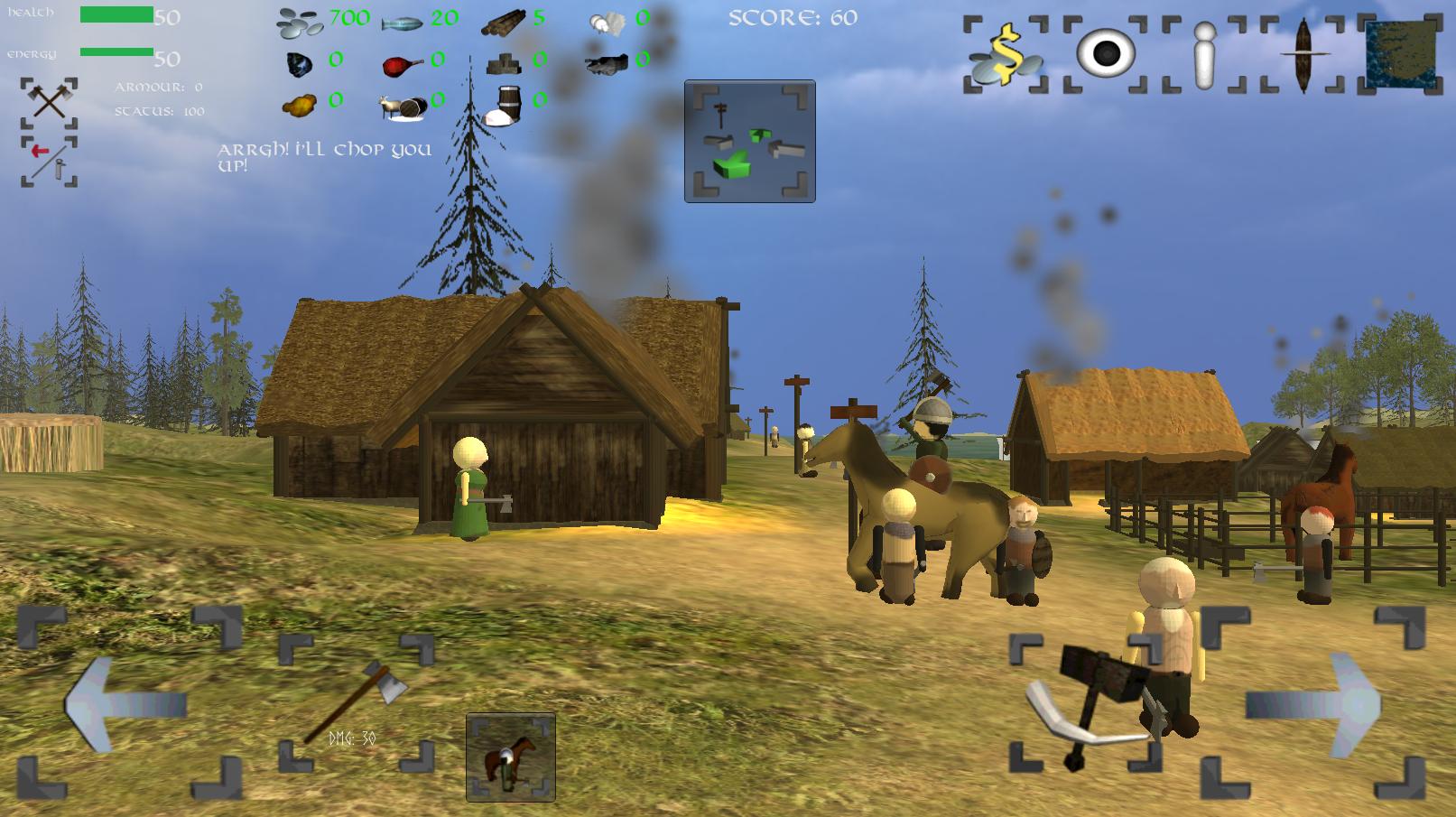 用斧头砍伐松树林,以建造新房。或使用不同的策略并杀死房屋的所有居民来占领它!开设商店出售商品或提供服务。与人们聊天以结交朋友,并听到当地新闻和萨加斯关于王国的信息。