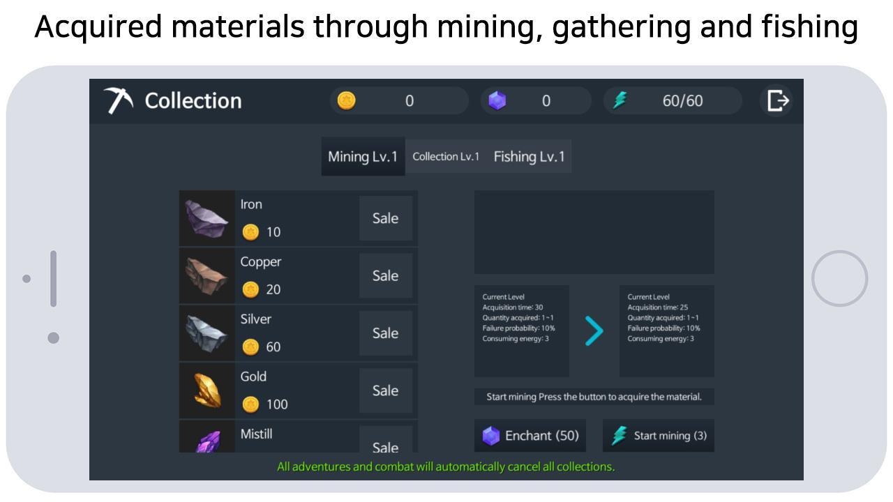 - 您可以通过收集(采矿,聚会,钓鱼)自动获取材料。
