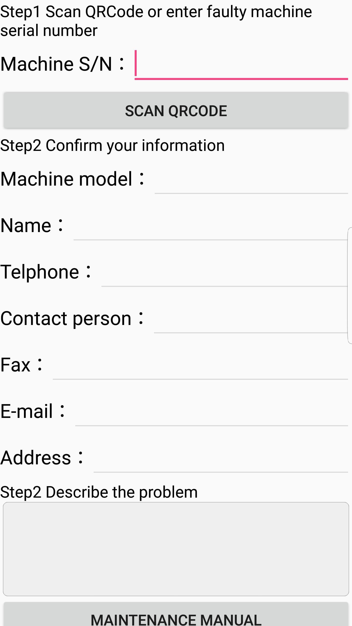 掃描機序列號RQCode或Input Machine序列號可以直接報告應用程序中的機器故障問題