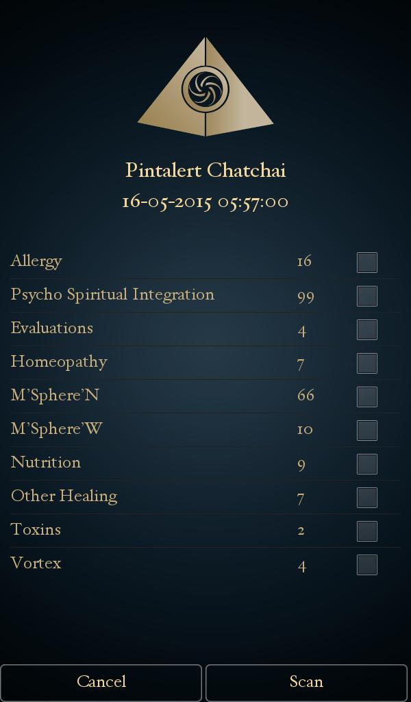 Mandala Scan - 是一種基於平板電腦的評估工具,可檢測用戶的Biomatrix領域與共鳴型的圖書館之間的偏差程度,確定了最有益的順勢療法,精油,花朵精油,晶體,情感,精神和充滿活力(心理)問題(心理)問題和效果,過敏素和效果和效果和效果,並發現。