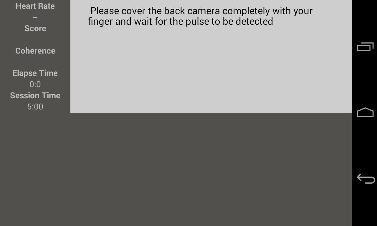 1)首次使用用戶應進行15分鐘的培訓課程,以找到最舒適的呼吸步伐。完全用手指蓋住後攝像頭鏡頭。您不必覆蓋LED,但應該確保光線足夠強,可以幫助相機閱讀脈搏。