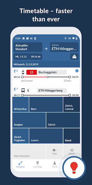 Viadi Zero實時地圖向您顯示了瑞士所有公共交通車輛的當前位置。直接在地圖上直接查看時間表,移動性和Publibike位置從未如此容易。