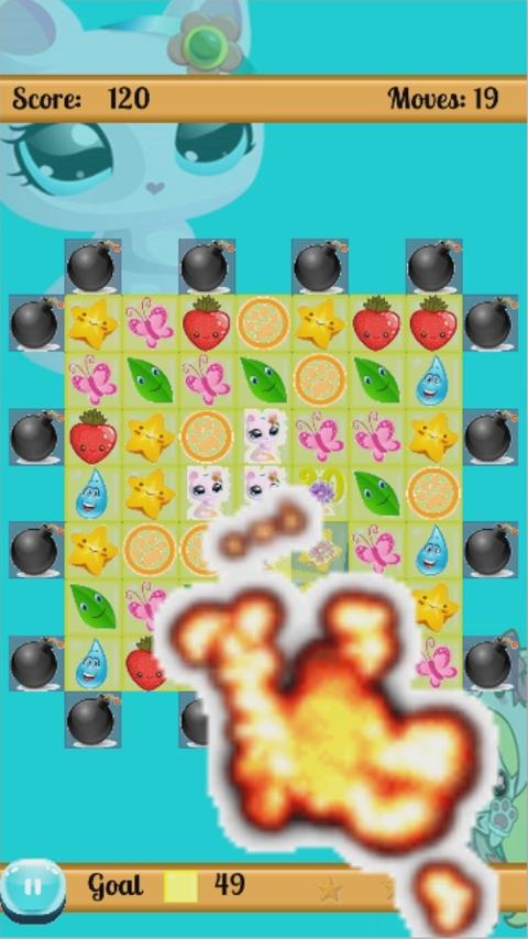Baby kitten match 3 adventure是一場有趣的成癮比賽3貓遊戲,每個級別都有不同的規則,有限的動作,有限的時間,帶有特殊的小貓炸彈在屏幕上吹一個洞,開始驚人的閃電風暴等等!!!
