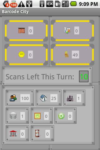 掃描條形碼以建立資源,然後將它們花費在建立您的城市。我完全可以對此遊戲的用戶輸入開放。如果您有想法,請分享。