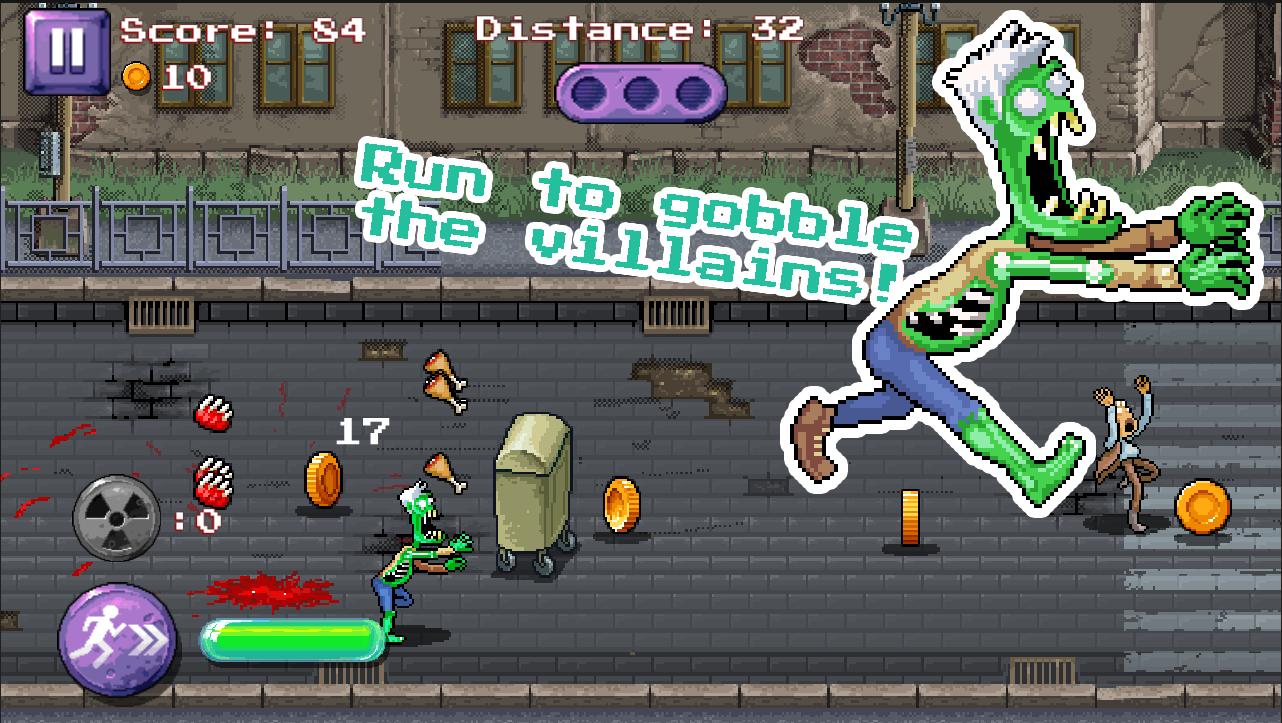 在這個有趣而令人興奮的像素藝術跑步者中成為真正的殭屍!