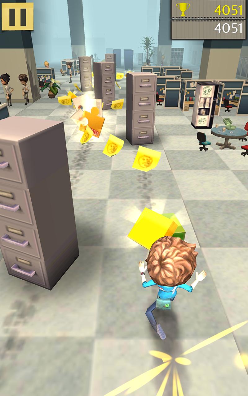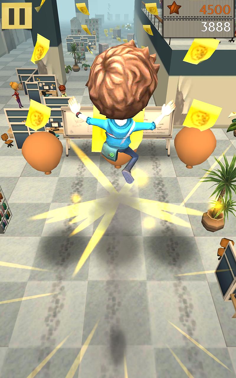 只需滑動手指以奔跑,跳或滑行在開放空間中即可。充分利用凌亂的工作環境:彈跳並在派對氣球上播放。但是要當心!您的技術技能將受到挑戰。避免在前往辦公室的途中散佈的垃圾箱,櫥櫃和其他家具。