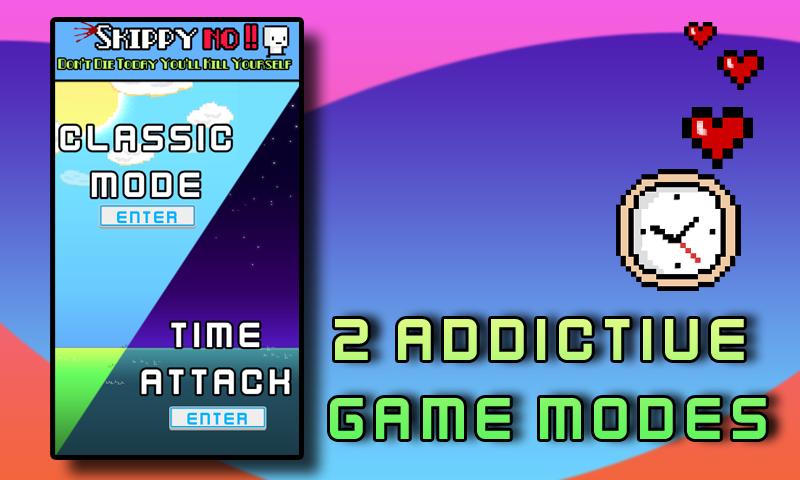 幫助Skippy今天不要自殺,並儘可能高。只需在他跑步時點擊屏幕,以使他跳躍,不要觸摸任何平台。