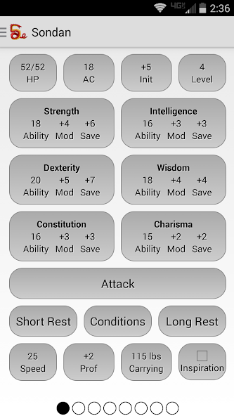 該應用程序設計用於角色扮演遊戲,需要為每次攻擊,技能檢查和防守進行許多不同的計算。維護您的角色表進行了許多工作。這個應用程序為您完成了很多工作。使用此應用程序,您可以: