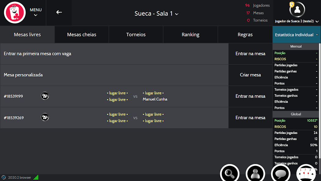 免費的在線多人遊戲與Sueca,Bisca,Hearts,上下,Dominoes,Lerpa,Solitaire和Checkers。您可以與您的朋友或與計算機一起玩。