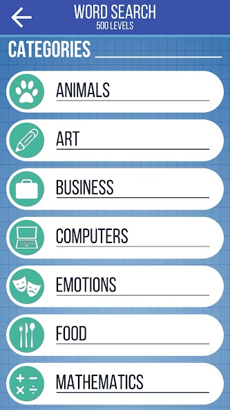 單詞搜索遊戲具有3種遊戲模式和3個困難!